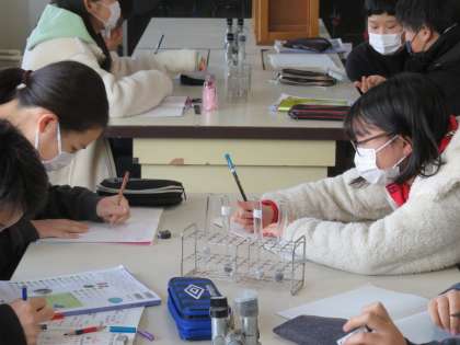 「水溶液の性質とはたらき」の学習で塩酸の性質を調べています。