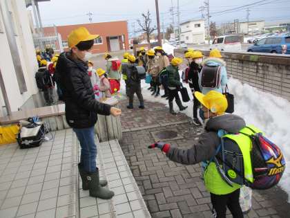 委員会が挨拶運動をしています。