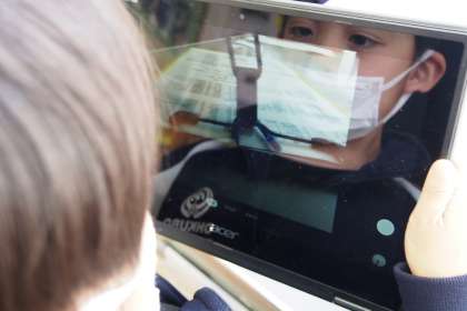 「すきまちゃん」のすきなすきまを見つけ、パソコンで写真を撮りました。お気に入りの場所が見つかって嬉しそうな「すきまちゃん」たちでした。