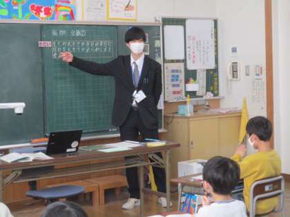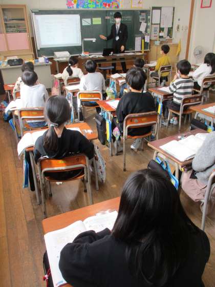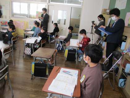 2年2組で算数の研究授業が行われ、多くの教員が参観しました。