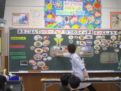 栄養職員の先生に、朝食の大切さについて授業をしていただきました。