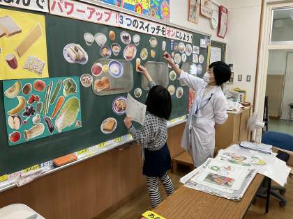 食べ物は赤・黄・緑の三つのはたらきがあり、朝バランスよく食べることが大切だということを教えていただきました。