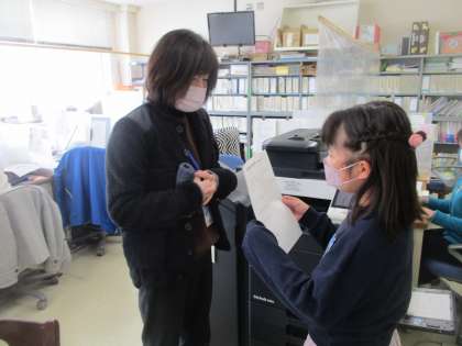 2月18日(金) 4年生 学習の様子2 公開日 2022/02/18 更新日 2022/02/18 2023年度 4年生 4年生は卒業を祝う集会でクイズを任されています。 みんなで楽しめるように、6年生や先生にアンケートをとって、クイズを作る予定です。先生方にお願いしに行く様子も、ずいぶん頼もしくなってきました。