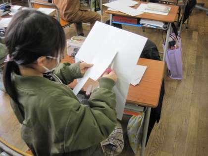 算数科では、どんな展開図が立方体になるのか、実際に組み立てて確かめました。