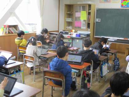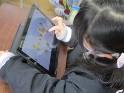 なかよし委員会が企画した「文字ならべゲーム」に取り組みました。感染対策により、クロムブックを使って行いました。