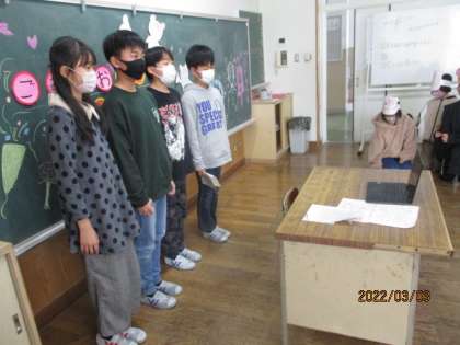 3月3日(木) 5年生 卒業を祝う集会の舞台裏(2) 公開日 2022/03/03 更新日 2022/03/03 2023年度 5年生 5年生がリーダーとなって、卒業を祝う会を行いました。 祝う会が終わると、6年生が「楽しかったよ」「ありがとう」と声をかけていました。とても満足そうにしていた5年生がいました。