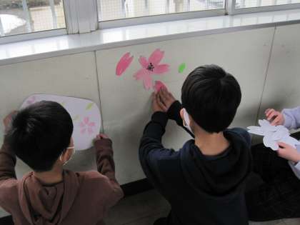 3月3日(木) 4年生 卒業掲示 公開日 2022/03/04 更新日 2022/03/04 2023年度 4年生 卒業生に向けて、お祝いの気持ちを伝える掲示をつくりました。 位置も確認しながら貼る姿に、お祝いの気持ちを届けたいという強い思いが伝わってきました。