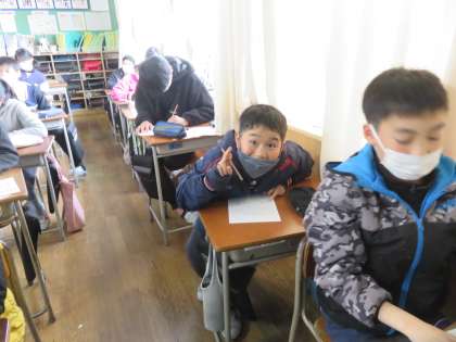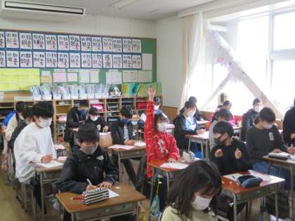 6年生は各学年からの出し物やプレゼントを笑顔で受け取っていました。途中のビンゴゲームでは、「ビンゴ!」と思わず叫びだす場面もありました。