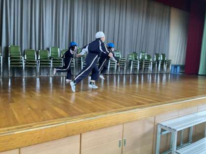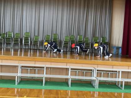 昨日は、1組がステージに上がって、自分たちの考えたお話に沿って表現遊びを発表しました。みんなの前で発表すると、少し緊張するようでしたが、大きく体を使って、生き物を表現できるようになってきました。また、動きの工夫もたくさん見られ、体全体で生き物を表現しようとするところが、素敵でした。