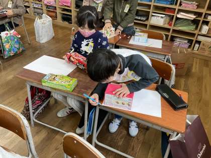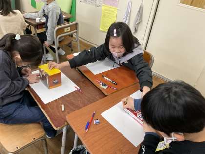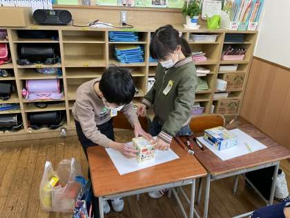自分が持ってきた箱の、平らなところの形や数を調べました。