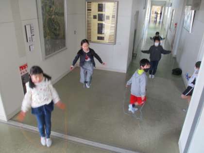 朝の会が始まる前、自主的になわとびをして体力をつけています。