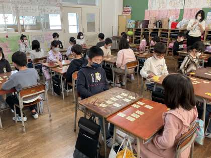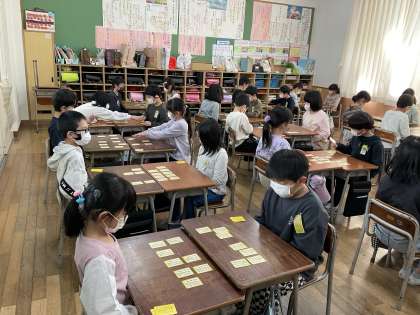 1組では、来年度から練習をする百人一首(黄色)の練習をしました。