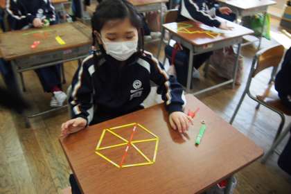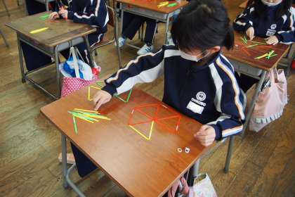 数え棒を使っていろいろな形を作りました。