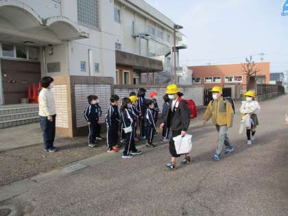 1年生が自主的に正門前で元気にあいさつを交わしています。