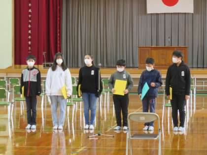 予行練習を振り返り、最終確認をしました。また、式のあとのセレモニーの確認をしました。