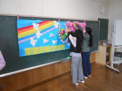 3月17日(木) 5年生 卒業式の飾り付け(舞台裏) 公開日 2022/03/18 更新日 2022/03/18 2023年度 5年生 5年生は卒業する6年生のために、教室を飾り付けるための掲示物を作ってきました。最後まで一生懸命に作っていました。すてきな飾り付けになりました。
