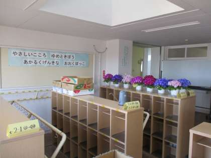 写真にあるように、校門入り右手すぐ見えますのが1、2年生用の低学年玄関です。