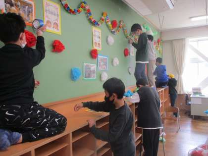 今日は、1〜5年生が下校した後、入学式の準備をしました。