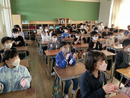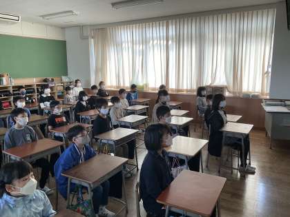 5年生は、オンラインで入学式に参加しました。お祝いの気持ちを直接届けることはできないけれど、よい姿勢や大きな拍手、しっかりとした服装でお祝いの気持ちを伝えようという気持ちが教室にあふれていました。その態度から、高学年としてがんばっていこうという気持ちが感じられました。