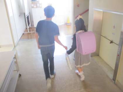 玄関から1年生教室まで誘導した女の子は、「緊張した様子だったから話しかけてあげた」と赤るい笑顔で報告してくれました。