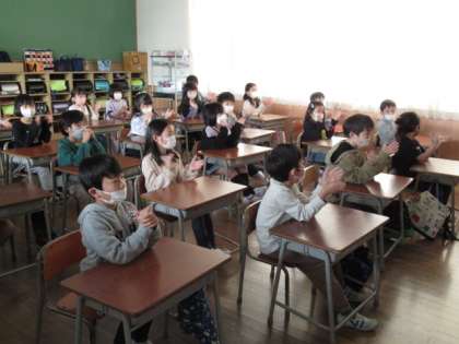 お祝いの気持ちを込めて拍手で1年生を迎えていました。