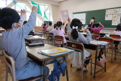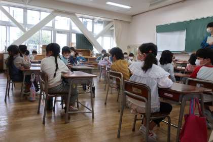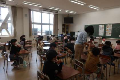 今日は、お休み明けの月曜日です。金曜日に、学校での過ごし方を学習しました。今日は、朝から張り切って、教えてもらった通りに朝の準備をしました。どのクラスの子供たちも、落ち着いてしっかり先生の話を聞いていました。