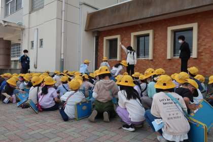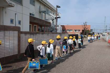 今日は、神通川沿いにある千本桜を見に行きます。出発式では、素早く並び、先生の話をしっかり聞いていました。一列に並び、落ち着いて歩く姿から、子供たちの成長を感じました。
