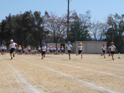 4月12日(火) 3年生 体育2 公開日 2022/04/13 更新日 2022/04/13 2023年度 3年生 50m走を2本走りました。2年生の頃に比べると、走る力が付いてきたように感じます。青空の下を全力で走りました。