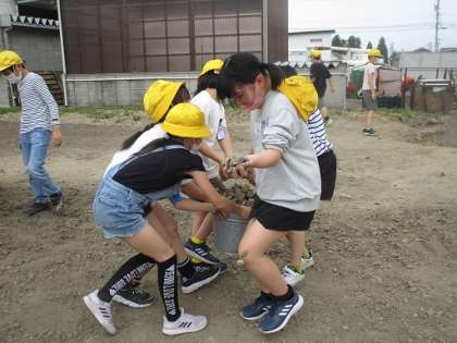 重くなったバケツを何人もの子どもが手伝おうとしており、すてきな姿を見ることができました