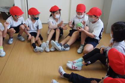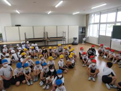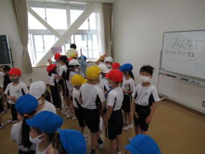 学年集会で、団ごと、誕生日の月ごとなど、いろいろなテーマにそって、友達と集まるミニゲームをしました。