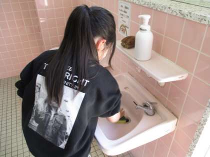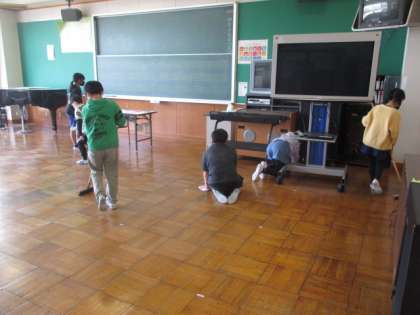 掃除の時間には、細かいところにも気を配り、気持ちのよい環境づくりを目指しています。他の学年のお手本となるよう、一生懸命に掃除に取り組んでいます。