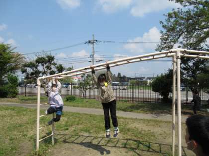 遊具で遊んだり、落ちている花を拾って楽しみました。
