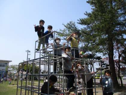 本日は天気もよく、2年生は昼休みにわんぱく広場に出て元気に遊びました。