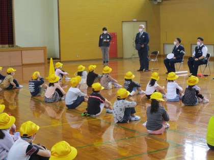 横断歩道の渡り方をはじめ、自分たちが安全に登下校するための方法を警察官の方々と学びました。