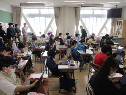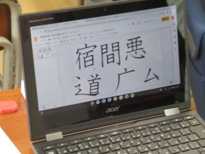 クロムブックを使って、2つに分かれている部分を組み合わせて一つの漢字を作りました。部分の一方が部首になることを学習した後、いろいろな部首を探しました。一人一人がクロムブックを操作しながら、楽しく漢字の学習に取り組みました。昨年度から導入したクロムブックは今後も活用して、主体的な学習に取り組めるようにしていきます。