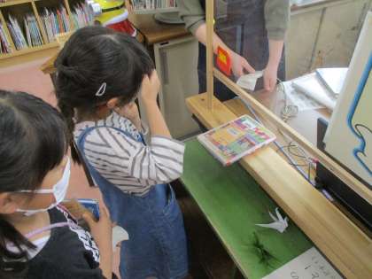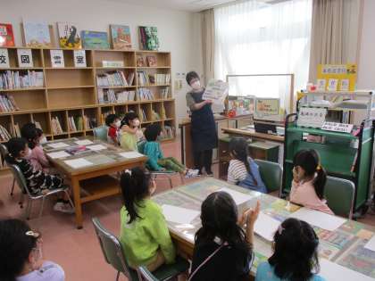 本の冊数を「500冊?」「1000冊?」と子どもたちは予想していましたが、10000冊を超えており、たくさんの本があることに喜んでいました。