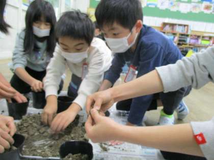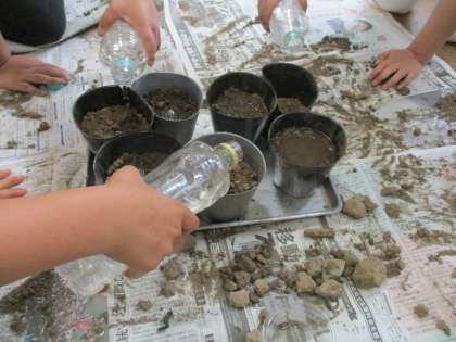 「いつ芽がでるかな」「5日くらいかかりそう」と予想をたてていました。