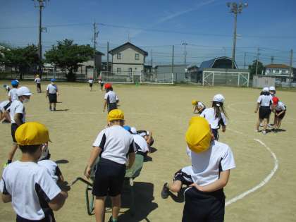 練習の後は石に躓かないように、みんなでグラウンドの石拾いをしました。