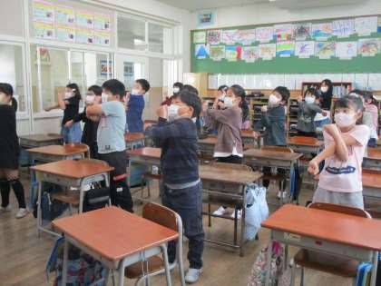 5月11日(水) 3年生 大久保カップにむけて 公開日 2022/05/12 更新日 2022/05/12 2023年度 3年生 6年生さんが作ってくれた準備運動の練習をしました。 本番に向けて、練習を重ねます。