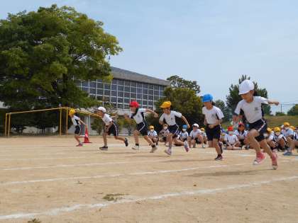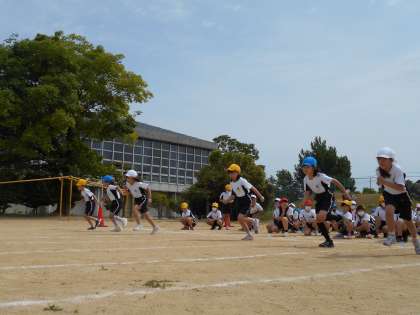3年生は、運動会で60m走を走ります。普段走っているよりも10m長い距離を、最後まであきらめずに走り抜けます。