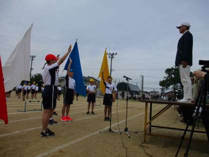 順延になった大久保カップが「一人一人の全力と一団一団の協力で楽しい運動会にしよう」のスローガンのもと、開催されました。開会式では、開会宣言、選手宣誓、国旗校旗掲揚、開会の言葉と6年生の代表が務めました