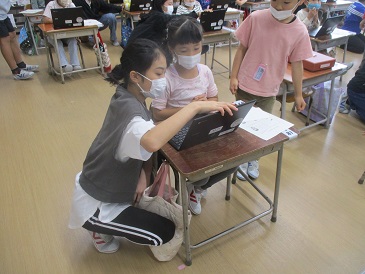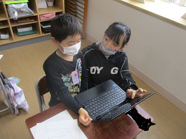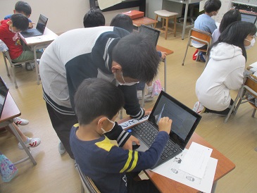 今日は、1年生が個人パソコンを使えるようにするための学習に、一人一人のサポーターとして参加しました。どの子もかわいい1年生に一生懸命対応している姿に、「6年生らしくなったな」と感じずにはいられませでした。
