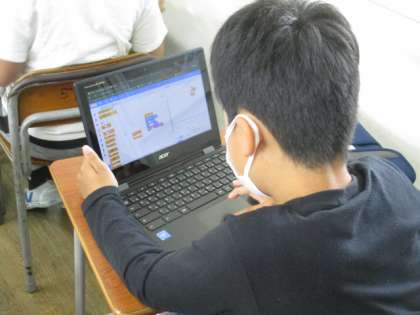 クラブ活動が始まりました。4〜6年生が協力し合って、役員や活動内容を決めました。プログラミングクラブでは、”スクラッチ”というアプリを用いて、自分の指示通りにキャラクターを動かす練習をしました。様々な動きを取り入れようと試行錯誤していました。