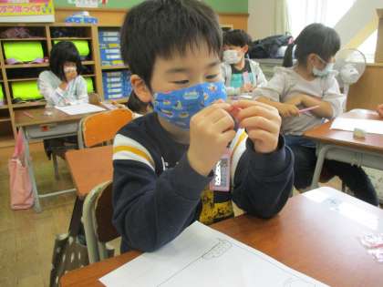 5月17日(火)1年生 生活科 あさがおの種の観察