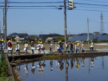 「田んぼや畑が多くて静かだね」「車がたくさん通っているね」と話しました。