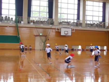 先日の体育は、タグを使って鬼ごっこをしました。次回はタグラグビーに取り組む予定です。