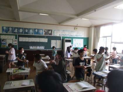 普通に歌ってみて・手拍子をつけて・手拍子と歩いてみてなどバージョンをかえてやってみました。曲の感じに合わせて、歌い方を工夫していました。