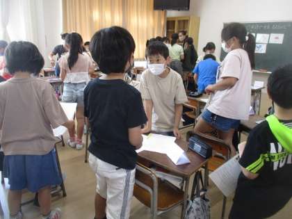 考えた紹介文を友達同士や先生に伝え、たくさんの人と会話を楽しみました。