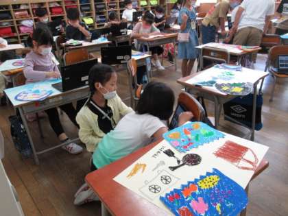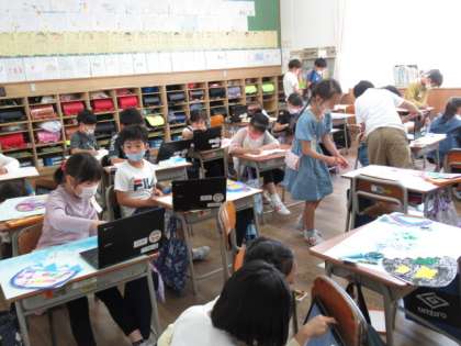 5月24日(火) 2年生 図工の時間 公開日 2022/05/24 更新日 2022/05/24 2023年度 2年生 図工で「ふしぎなたまご」の学習をしています。卵の中から、海の世界やお花畑などが、出てきました。子供たちは楽しそうに描いています。