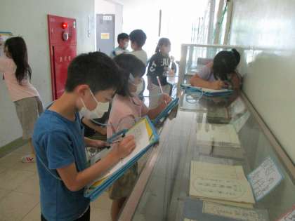 今日は体育館の周りから歴史がありそうな物を探しました。